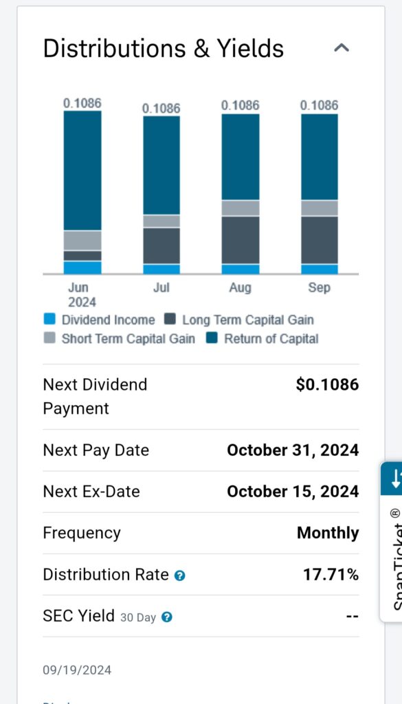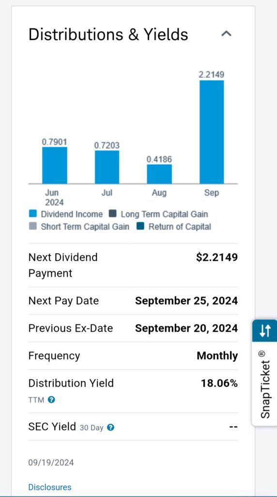 The 2 above are consistent paying and pay every 2 weeks. This last one is my BONUS dollars, this is what I use for trips, charities, and funding for other investing, it is a lot more expensive but it pays big on some months which make it ideal for bonuses… And it does pay a bit more annually, its just NOT a consistent value and some months pay a lot more per share.