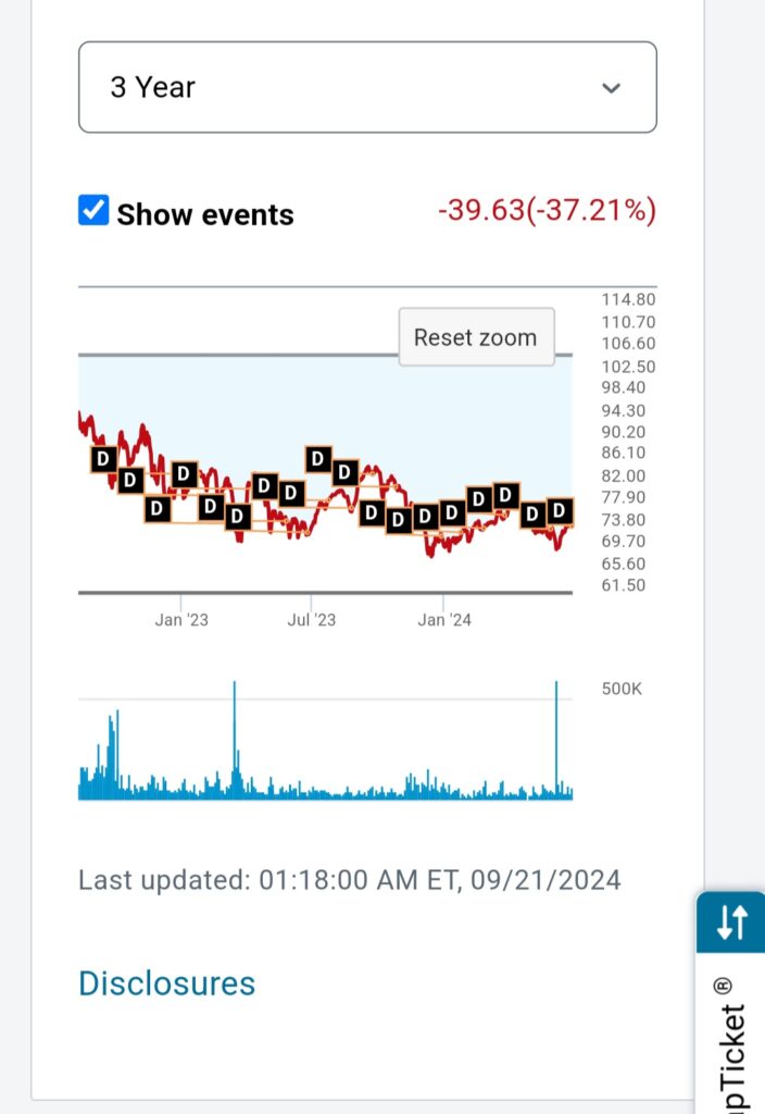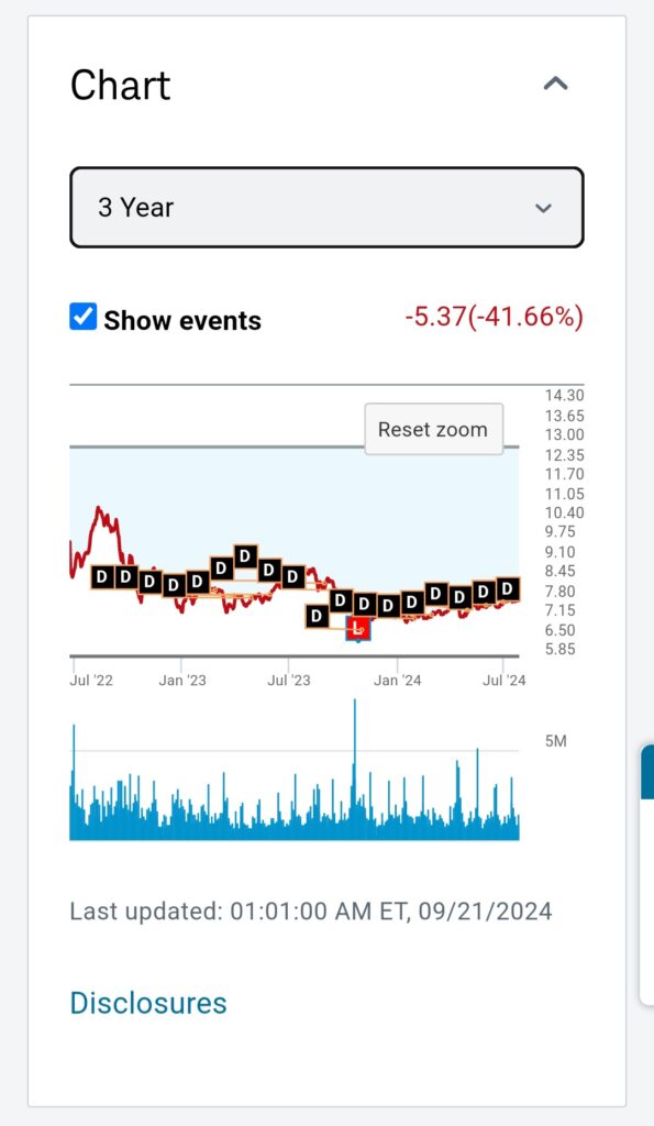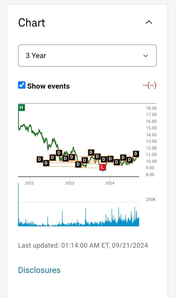 Price history (average). I do not want holdings that bounce around a lot, the steadier the position, the more likely there will be little changes in the dividend operations. CONSISTENCY is the magic word.
